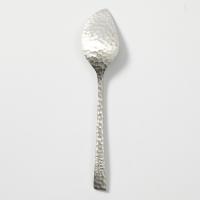 鎚目のカトラリーでも珍しく、ツボ部分にまで鎚目がつけられたティースプーンです。全面に施された手作り感のある鎚目が暖かさと高級感を引き立ててくれて、傷も目立ちにくくなります。海外ブランドのカトラリーのように大きすぎることがなく、日本人の体のサイズに合わせたちょうどいい大きさに作られています。新潟県燕市で生産されているこちらのスプーンは、持ちやすさにこだわり柄に厚みとゆるやかなカーブを持たせることで手の形にフィットするようにデザインされています。