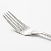 鎚目のカトラリーでも珍しく、ツボ部分にまで鎚目がつけられたディナーフォークです。全面に施された手作り感のある鎚目が暖かさと高級感を引き立ててくれて、傷も目立ちにくくなります。海外ブランドのカトラリーのように大きすぎることがなく、日本人の体のサイズに合わせたちょうどいい大きさに作られています。新潟県燕市で生産されているこちらのフォークは、持ちやすさにこだわり柄に厚みとゆるやかなカーブを持たせることで手の形にフィットするようにデザインされています。