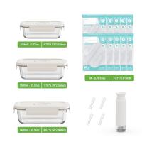 真空パック 14点セット「手動真空ポンプ 3つ真空ガラス保存容器付属630/1040/1480ML 真空バッグ10枚 密封用スライダー4枚付き」
