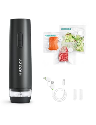 ・【強力な吸引力と長寿命 】40kPaの強力な吸引力により、HiCOZY袋を使用すると気密性の高い吸引性能を発揮します。フル充電で最大100枚の袋を真空処理でき、60分の長い稼働時間が特徴です。家庭での調理や食品の小分けに最適で、ペットフードや健康な食材の保存に