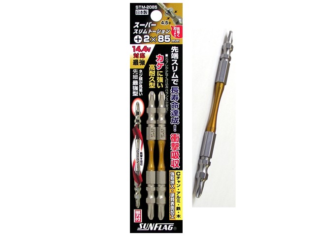 新亀(サンフラッグ) 電動ドライバー用スーパースリムトーションビット 両頭プラスビット 2本組