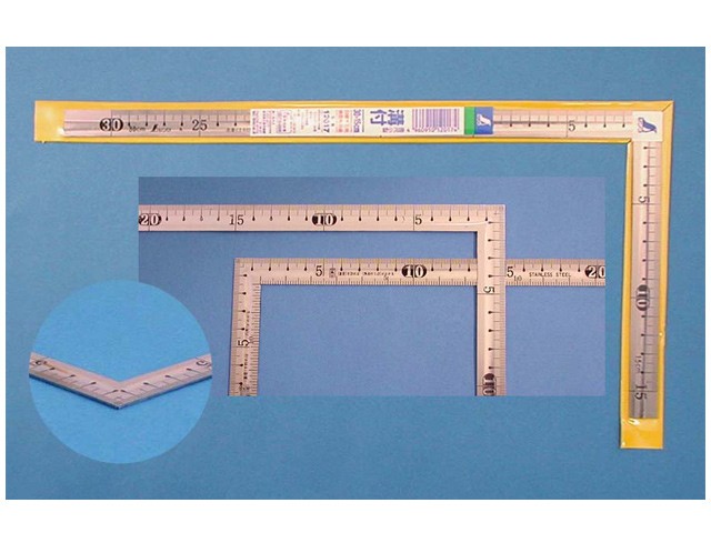 | 特長 | ●安価な曲尺です。 | 仕様 | ●直角度:100mmで0.1mmを超えない ●長さの許容差:±0.2mm ●目盛:cm表示 ●表目盛:長枝:外目盛30cm、内目盛5mmピッチ30cm ●短枝:外目盛15cm、内目盛5mmピッチ15cm ●長辺(mm):330 ●短辺(mm):165 ●幅(mm):15 ●厚み(mm):1.1 ●精度:直角度 ●長さの許容差:±0.2mm以下 ●質量(g):57 |