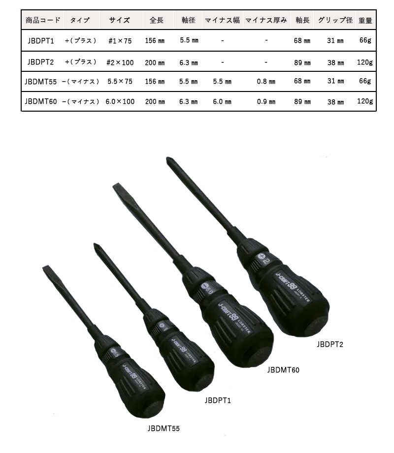 ロブテックス(エビ)貫通ドライバー <JBDMT55> J-CRAFT99 ブラック