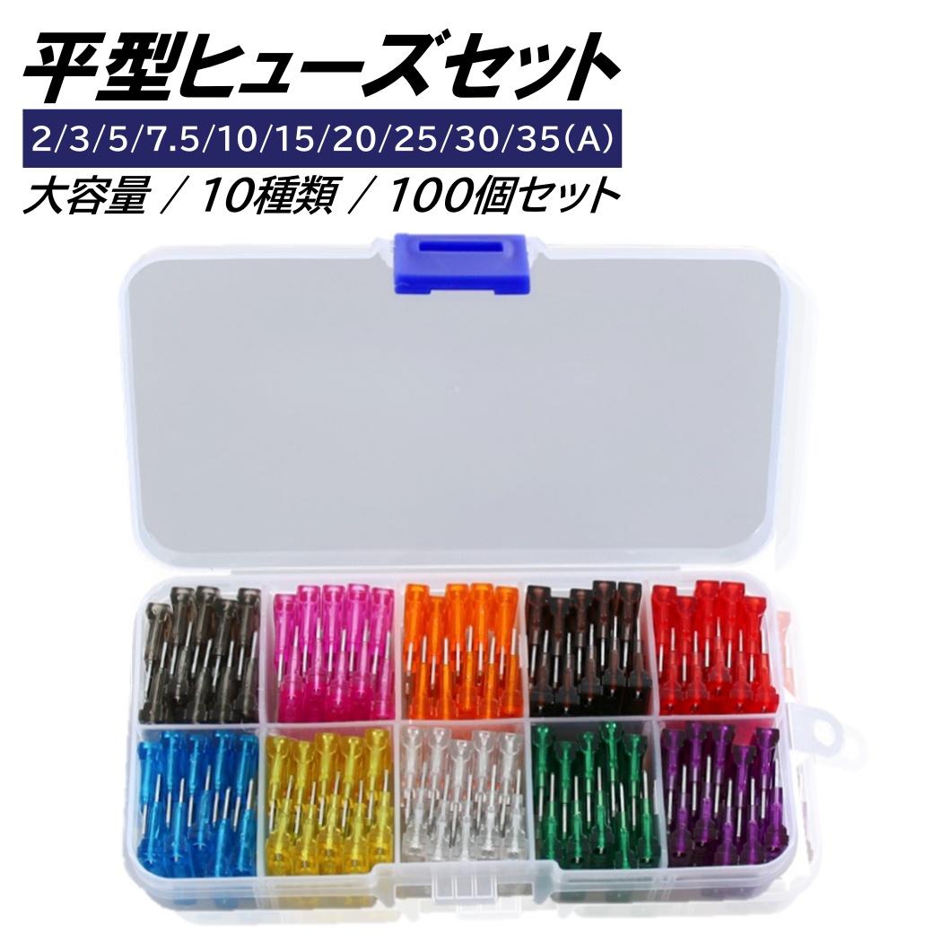 平型ヒューズ 10種 100個 セット 大容量 BOX入り ブレードヒューズ 平型 ヒューズ 車 バイク