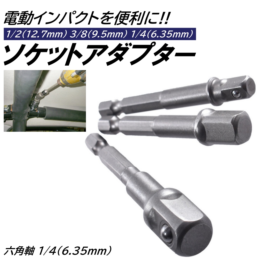ソケットアダプター 3本 電動 インパクト用 1/4 3/8 1/2 ビットソケットアダプター 電動インパクト用 ボックスレンチ DIY 工具 電動ドリル