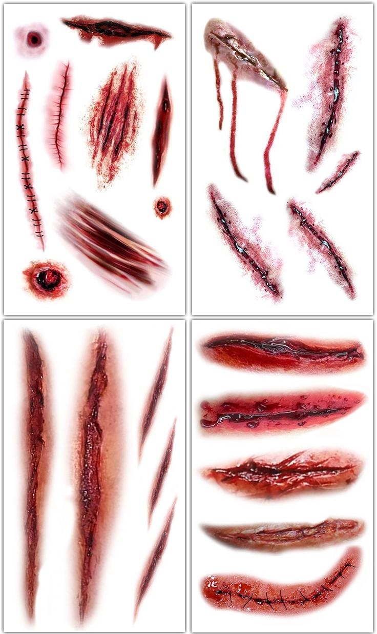 血のり・裂傷・かさぶたなど、本物そっくりのホラータトゥーで、ゾンビや怪我風メイクにぴったりです。