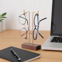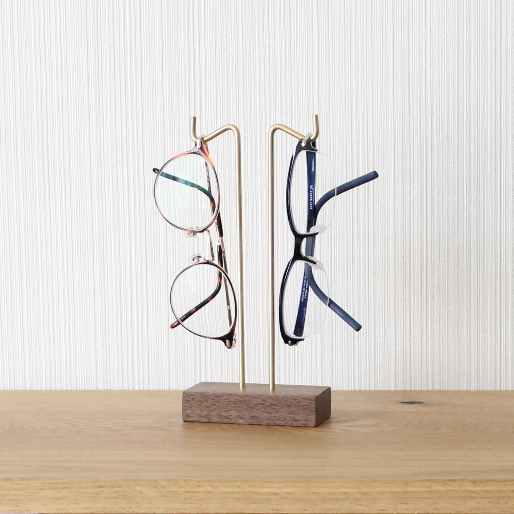 ウォールナットと真鍮のコントラストが美しい、無垢の木製メガネスタンド。
