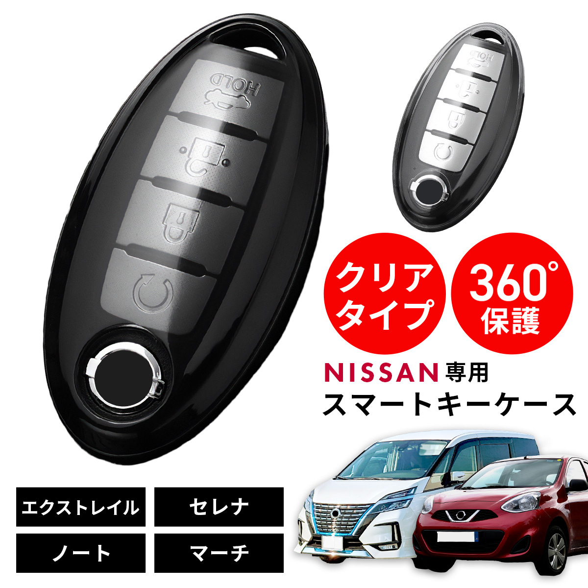 日産 クリア スマート キー ケース カバー ノート エクストレイル セレナ NISSAN 車 エルグランド キックス ルークス 爆買 新型 おしゃれ 保護 スモーク 透明