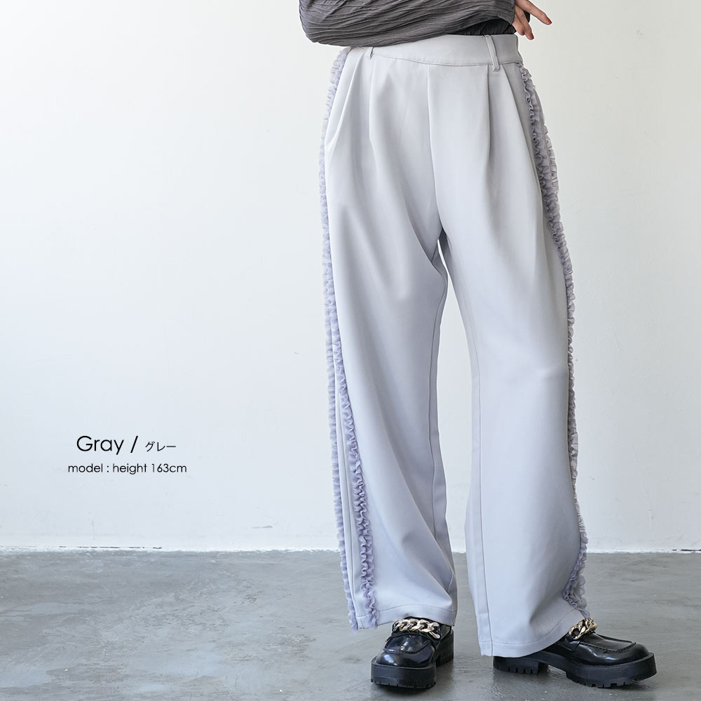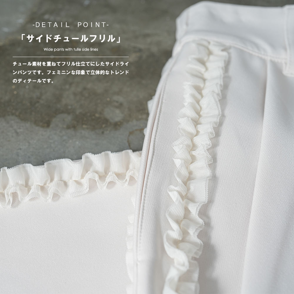 カットジョーゼットサイドフリルパンツ サイドフリルパンツ レディース ボトム ウェストゴム チュールフリル ポイント消化