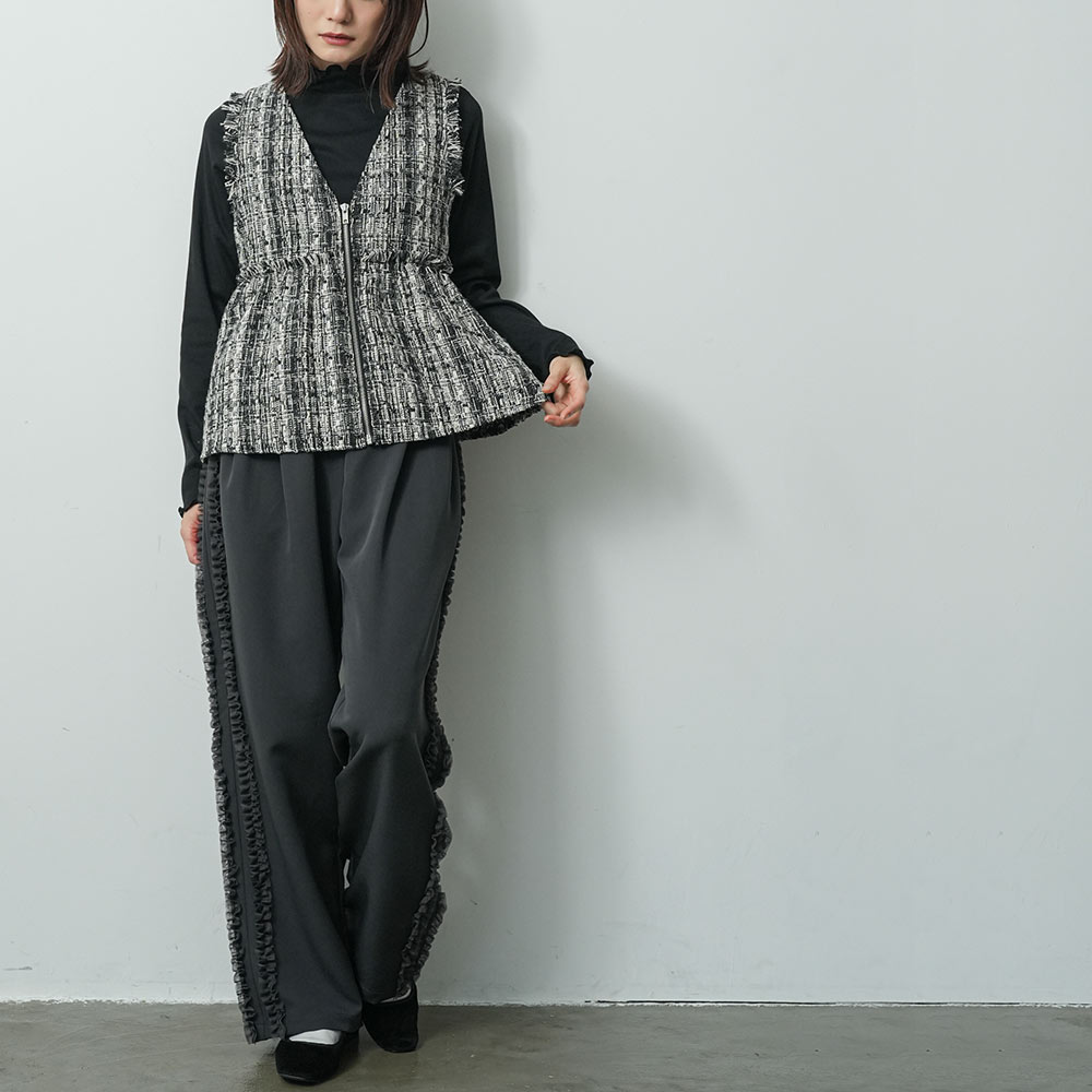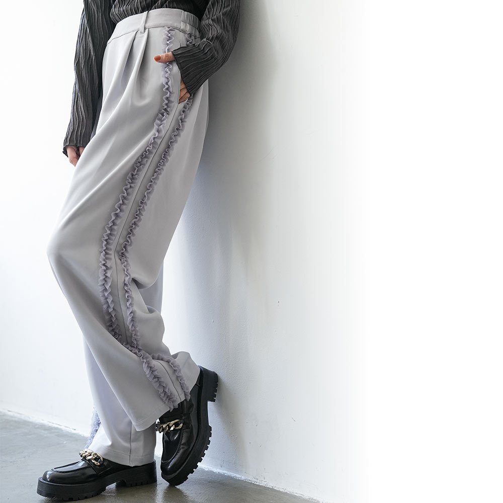 商品名:カットジョーゼットサイドフリルパンツ