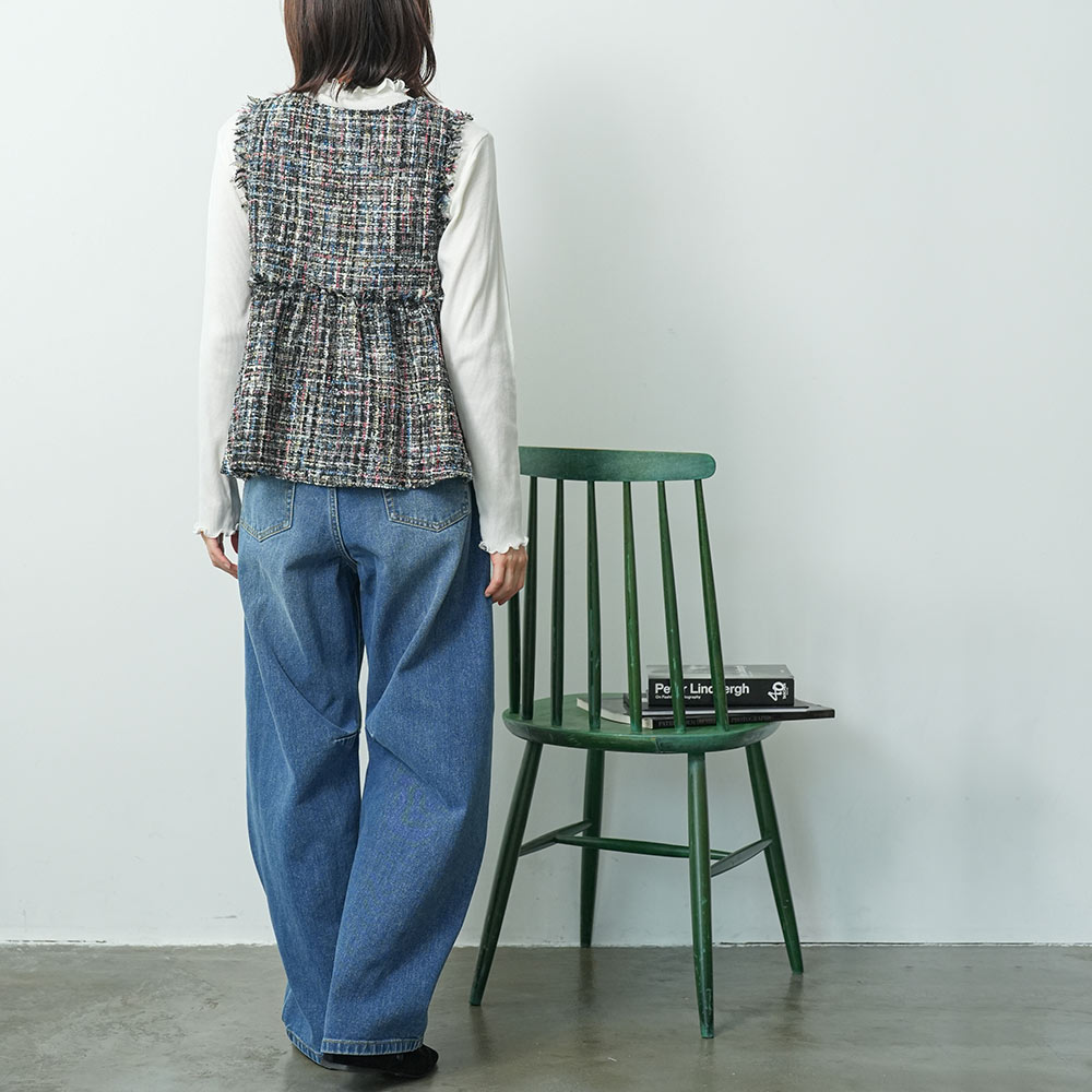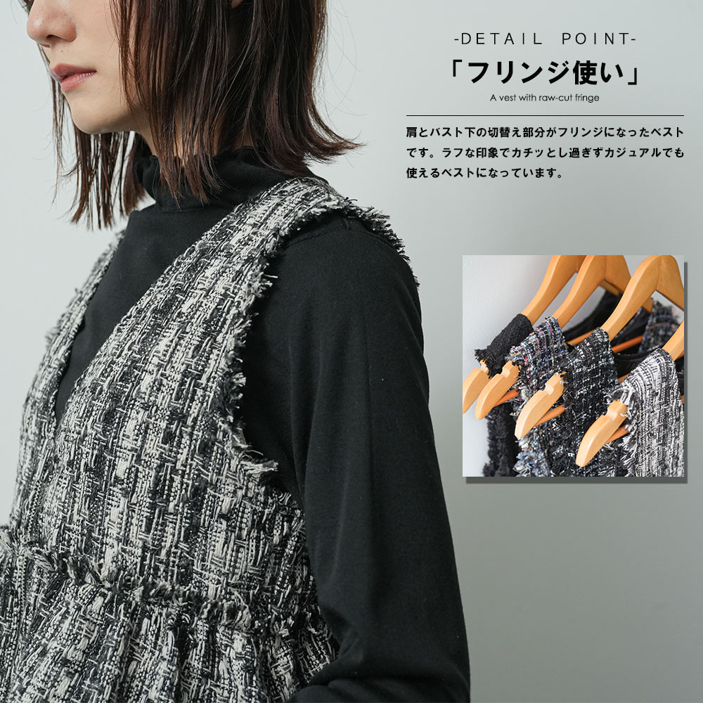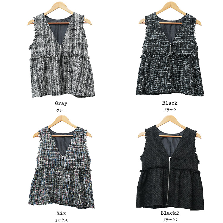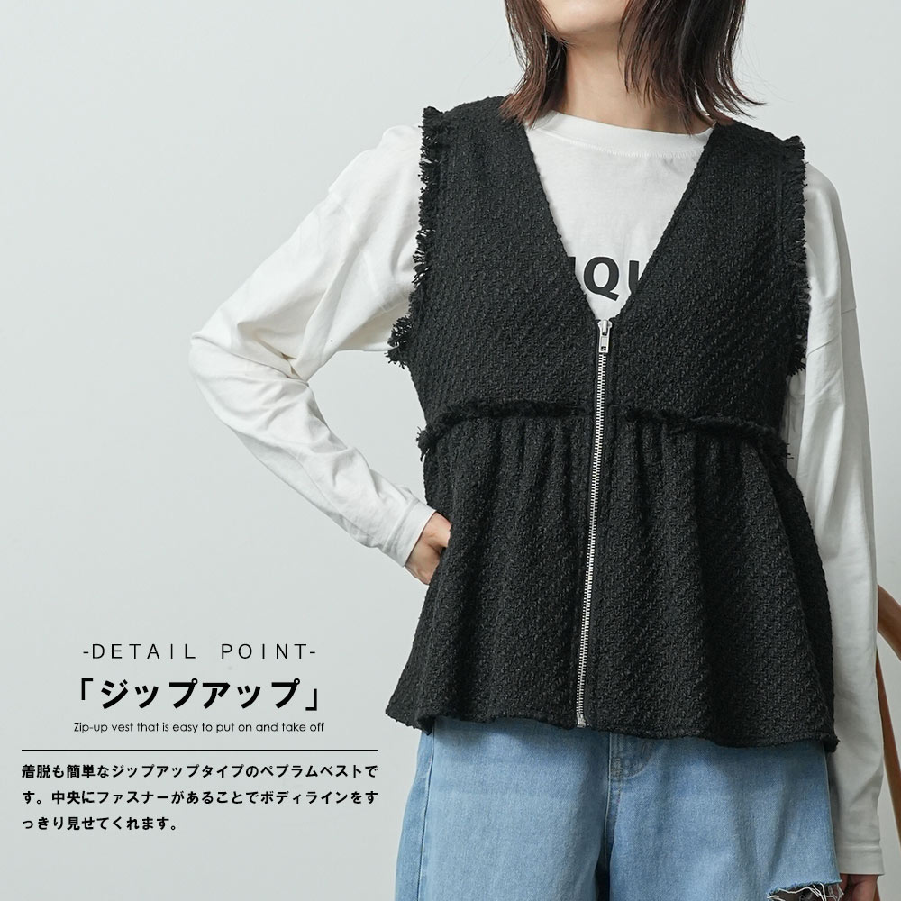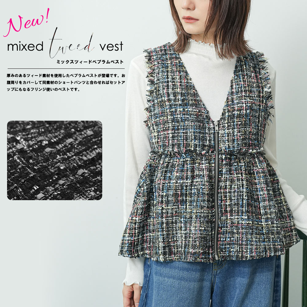ミックスツィードペプラムベスト ペプラムベスト ツィードベスト セットアップ レディース トップス (郵2)