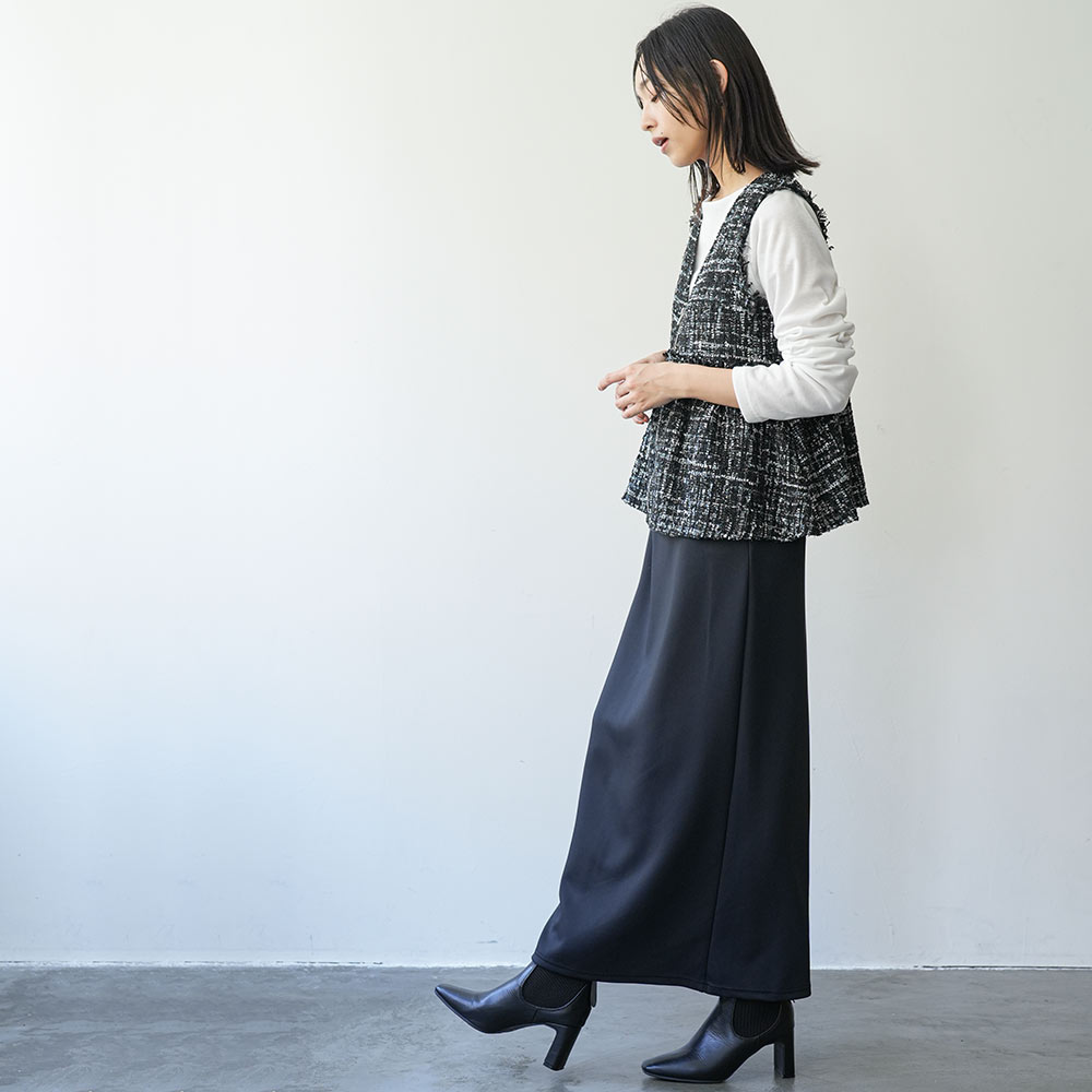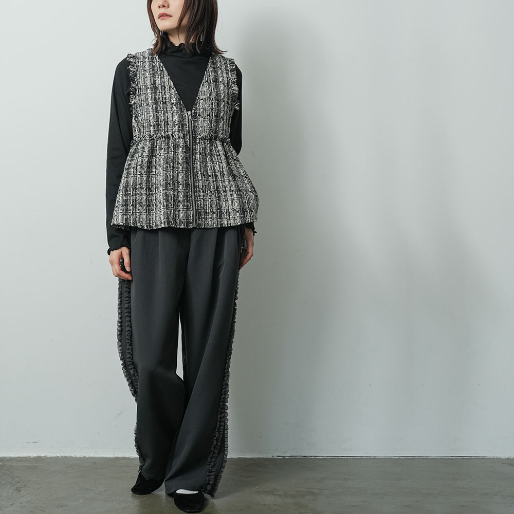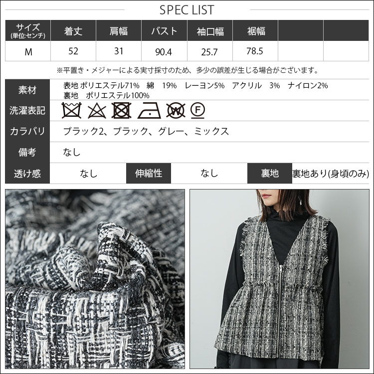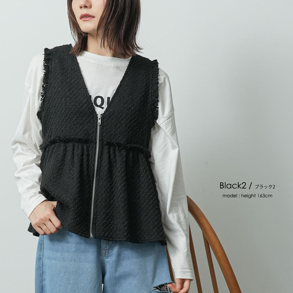 ミックスツィードペプラムベスト ペプラムベスト ツィードベスト セットアップ 無地 タートルネック 重ね着 重ね着コーデ ゆったりサイズ シャツコーデ レイヤードコーデ ジップアップベスト トレンドベスト 春 秋 冬 大きいサイズ おおきいサイズ