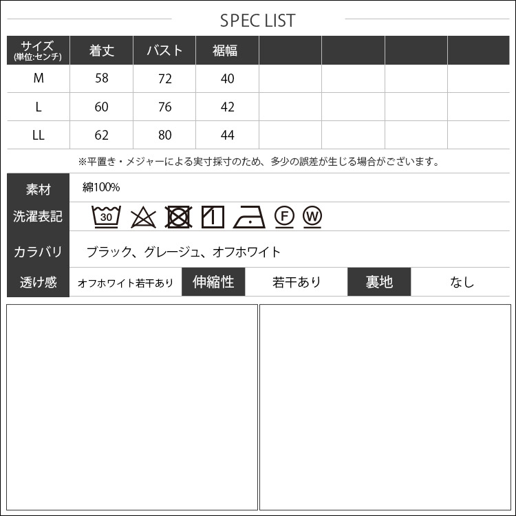 L:着丈 60cm バスト 76cm 裾幅 42cm