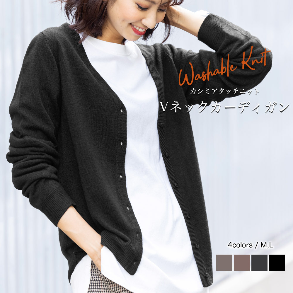 アウトレット カシミアタッチカーディガン レディース Vネックカーデ ストレッチ素材 長袖 (郵3) ポイント消化
