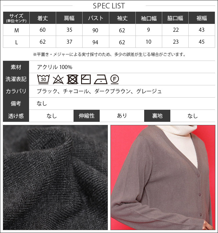 Vネック オフィスコーデ 冷房対策 シンプルカーデ M L カジュアルカーデ 羽織り 冷房対策 ニット 長袖カーディガン 春 夏 秋 冬 オールシーズン
