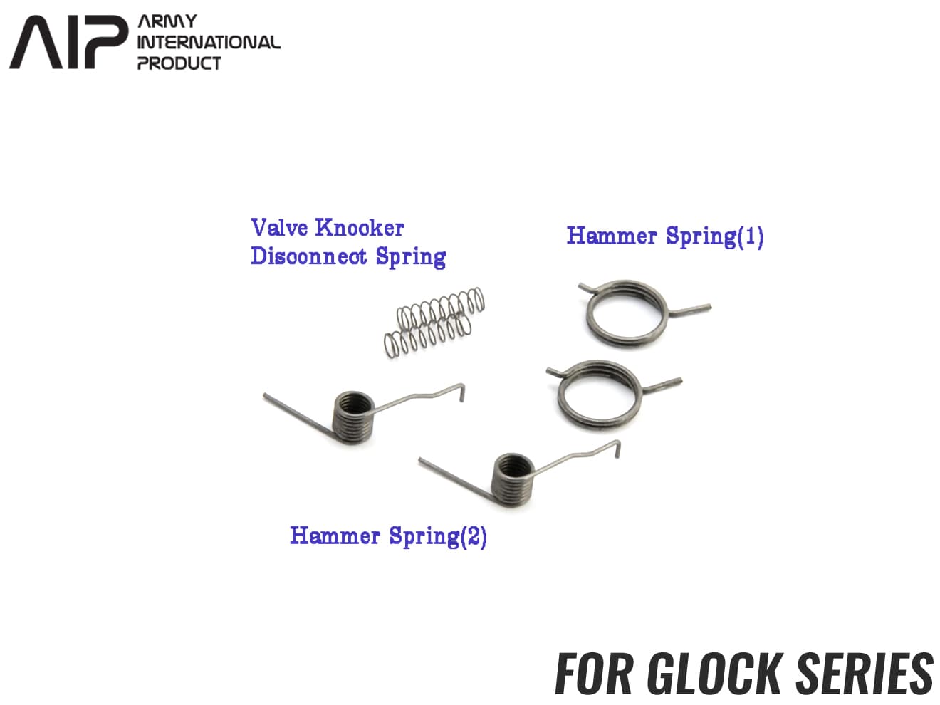紛失しやすいハンマー周辺の小スプリングセットAIP インナースプリング スペアセット G17/G22/G26/G34です。東京マルイ ガスブローバック GLOCKシリーズ(G18Cを除く)に適合します。