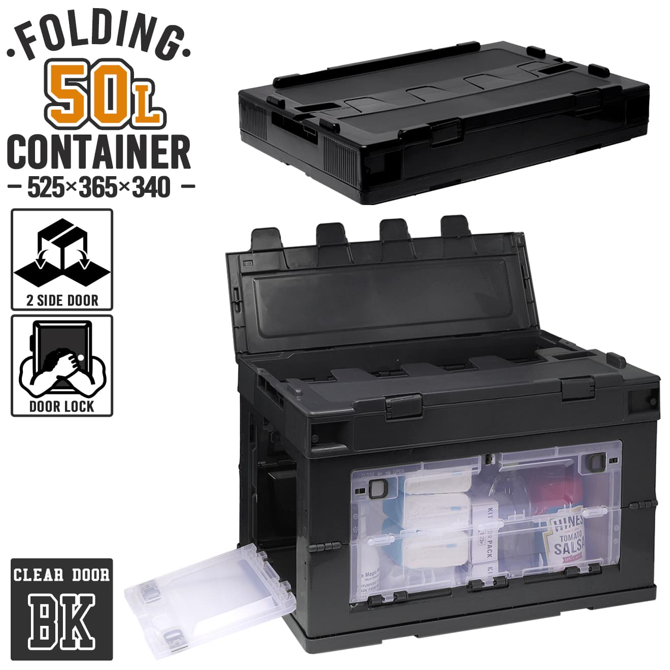 ●商品名 : ミリタリーベース 折り畳みコンテナ 50L クリア中窓2箇所付(長辺1&短辺1)