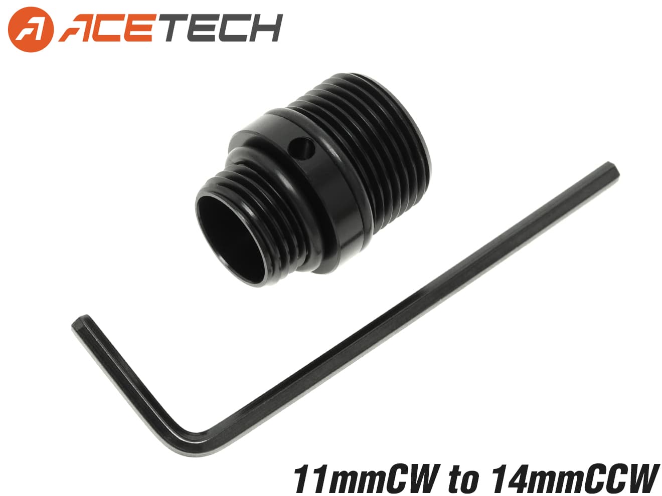ACETECH正規品!11mm正ネジ(♀)アウターバレルに14mm逆ネジのサイレンサーが装着可能にACETECH製 11mm正ネジ(♀)→14mm逆ネジ(♂) 変換アダプターです。11mm正ネジ(メス)に対応します。