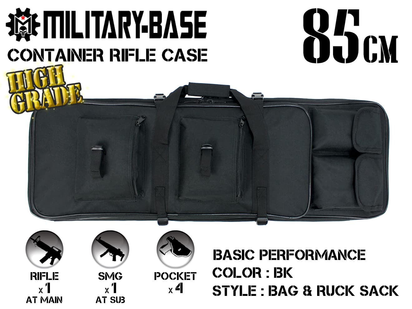 ●商品名 : MILITARY-BASE(ミリタリーベース)85cm コンテナ ライフルケース HG/BK