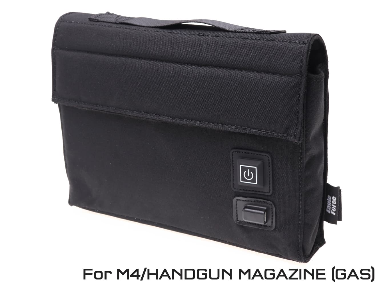 マガジンを温め初速を安定化イーグルフォース製のマガジンウォーマーポーチです。各社ガスガン用マガジンに対応します。