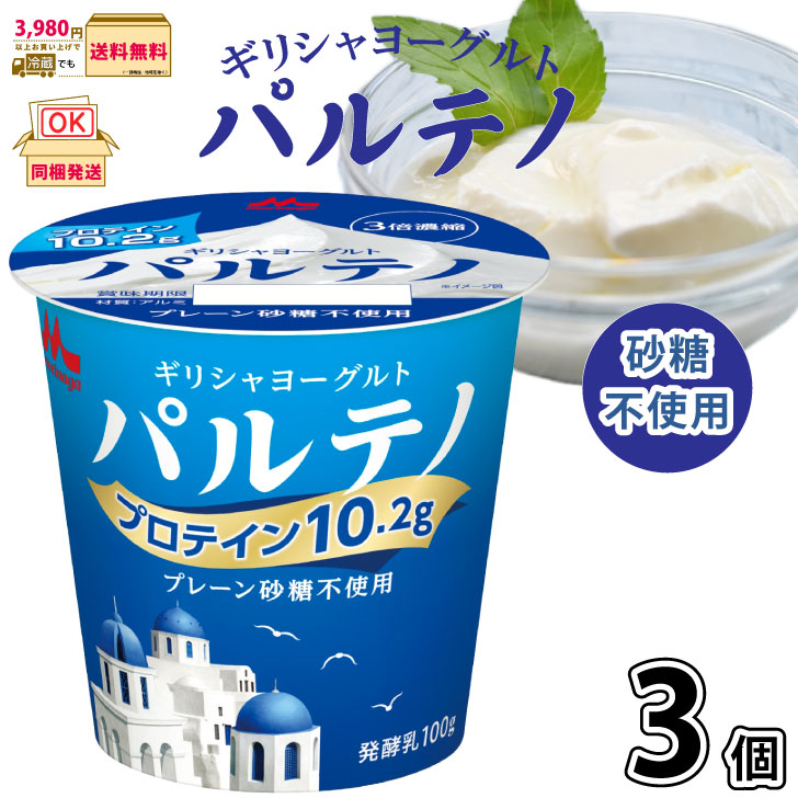 ギリシャヨーグルト パルテノ プレーン砂糖不使用 3個 【3980円対象】 【冷蔵同梱】 100g 森永乳業 一般製品