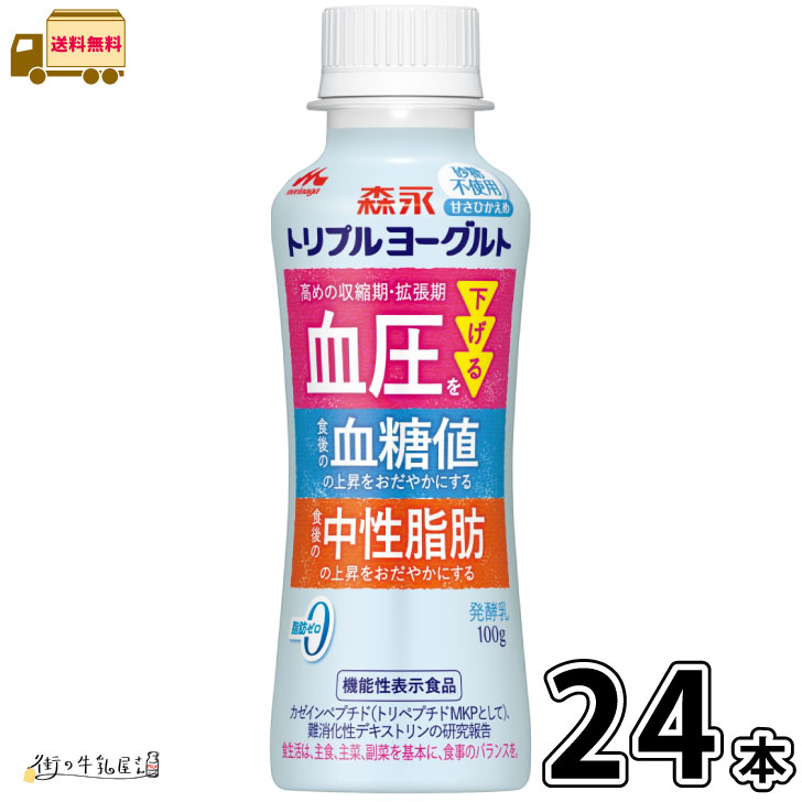 トリプルヨーグルト 砂糖不使用 ドリンクタイプ 24本 【送料無料】 100g 合計2ケース 機能性表示食品 脂肪ゼロ 脂肪0 森永乳業 一般製品