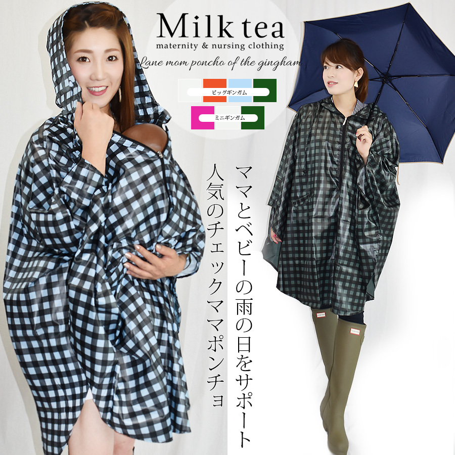 赤ちゃんとお母さんを一緒にすっぽりと包んでくれるレインポンチョです。