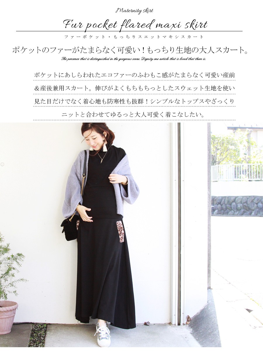 検索キーワード: マタニティ スカート ファーポケット もっちりマキシスカート 産前 産後 兼用 ロング マキシ 冬 マキシスカート マタニティウェア エコファー レオパード