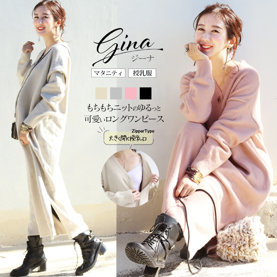 マタニティ 服 授乳服 服 ワンピース ジーナ ちくちくしない ふわもちニット ニット ロングニット 冬 長袖 安い おしゃれ マタニティウエア