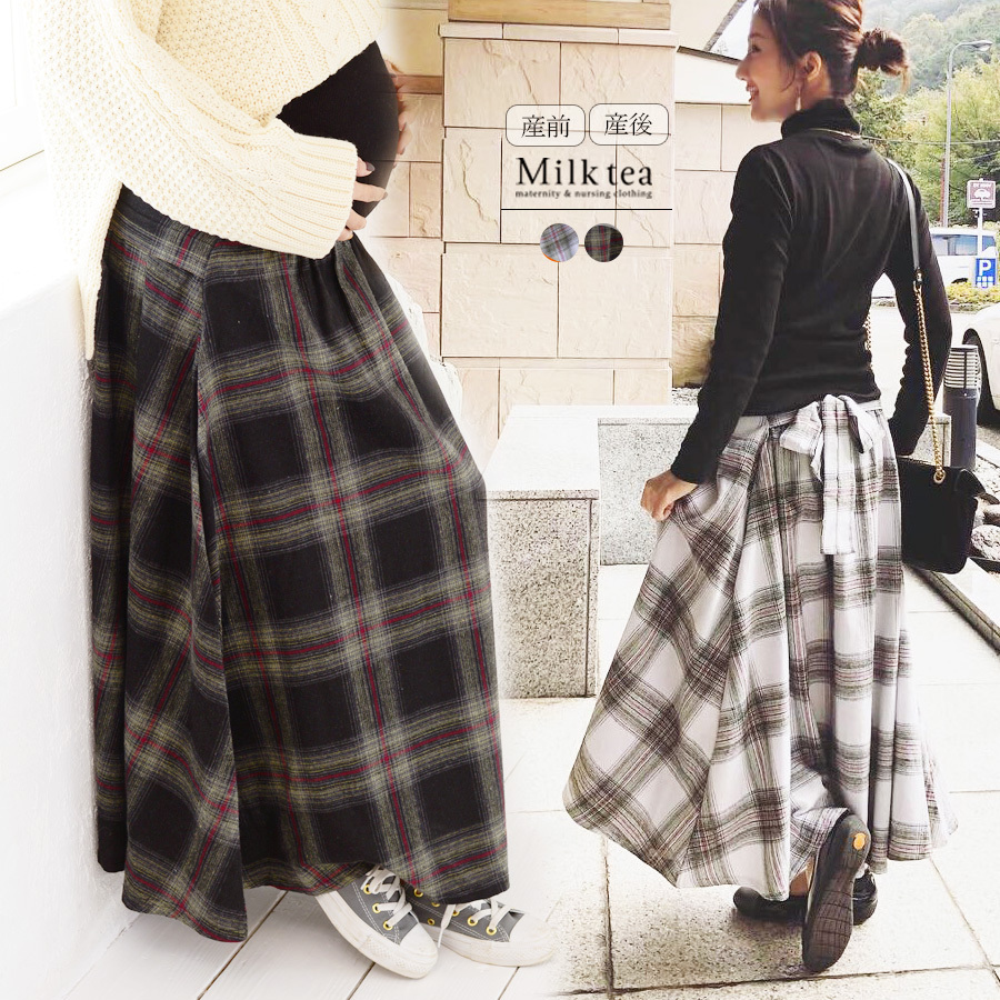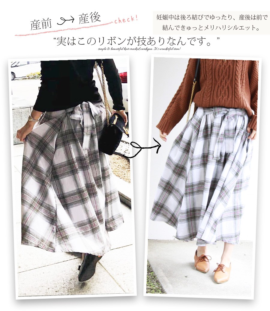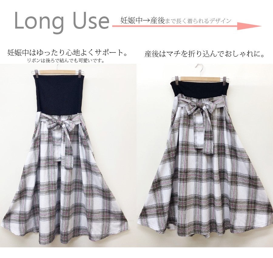 検索キーワード: マタニティ スカート フランネルチェック リボンフレアースカート 産前 産後 兼用 ロングスカート マタニティウェア マキシ チェックスカート