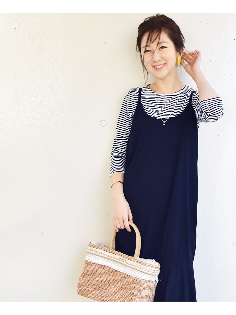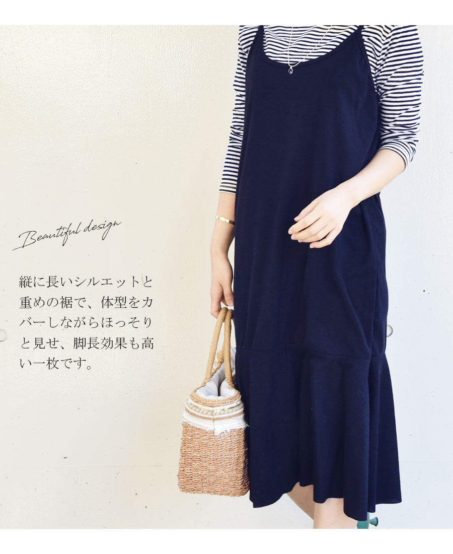 体型をカバーしながら縦長ラインで細見せし、脚長効果抜群です。