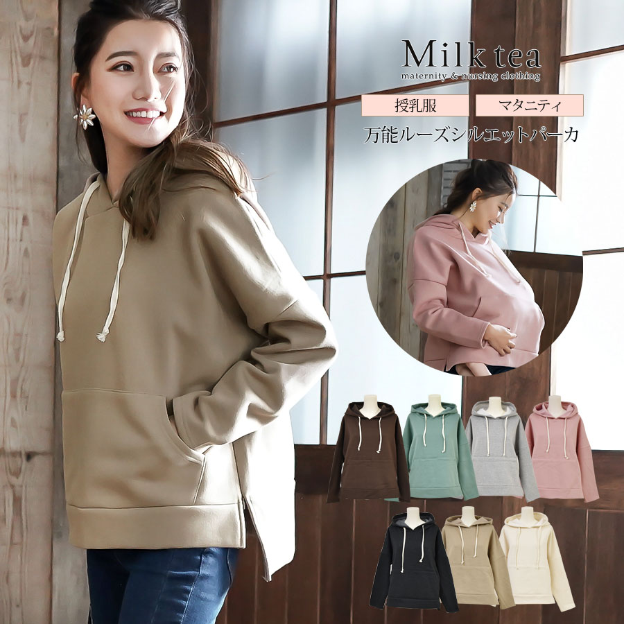 商品カテゴリ: 授乳服 マタニティ服 授乳 マタニティ 授乳服 マタニティ授乳ケープ マタニティ パーカ スウェット 裏起毛 体型カバー ビッグシルエット ルーズフィット オーバーサイズ レディース トップス 重ね着 フード マニッシュ カジュアル スポーティー シンプル カラフル 無地 防寒 暖か 秋 冬 冷え対策 ママ 妊娠 産前産後 妊婦 Milk tea ミルクティー