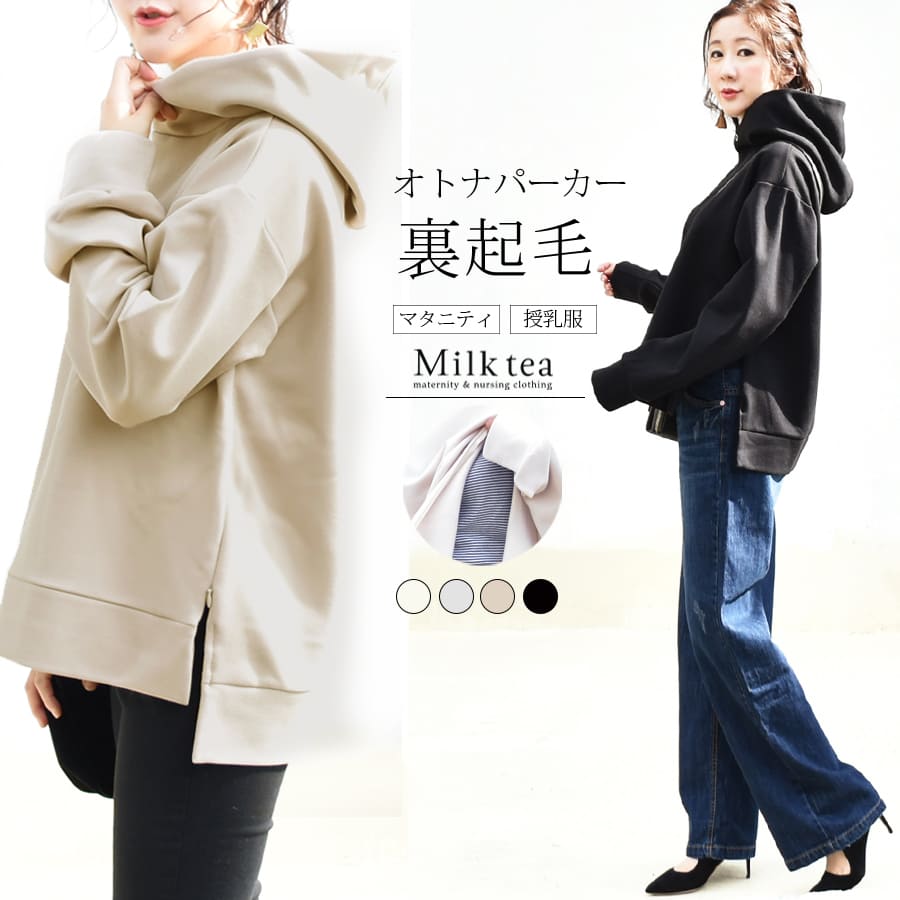 商品カテゴリ:マタニティー マタニティ 授乳服 授乳 妊婦服 妊婦 妊娠 出産 産前産後 レディース マタニティウェア トップス 綿 パーカー フード 裏起毛 あったか 大きいサイズ S M L XL LL 秋 冬 長袖 ミルクティー Milk tea フーテッド フード フーディ マタニティ 服 安い オシャレ おしゃれ