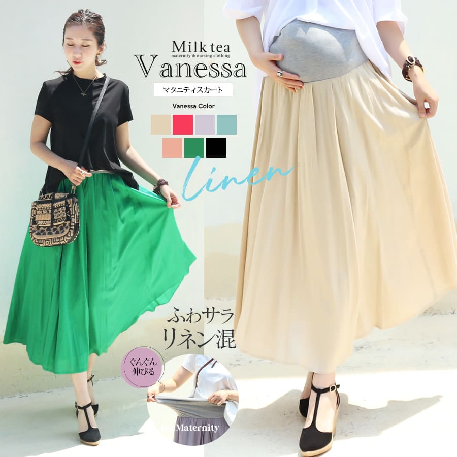 商品カテゴリ:マタニティー マタニティ 妊娠 出産 妊婦 妊婦服 マタニティボトムス マタニティスカート フレアースカート ロングスカート 麻 リネン 綿 お腹マチ ママ お腹楽ちん お腹ゴム 産前産後 シンプル 無地 Milk tea ミルクティ ミルクティーマタニティ 服 安い オシャレ おしゃれ