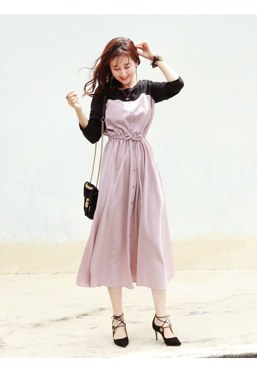 何度も試作を重ねた、美しいトーンのカラーを重ね、愛らしいビスチェ風ワンピースと、肌ざわりの良いTシャツをドッキング。