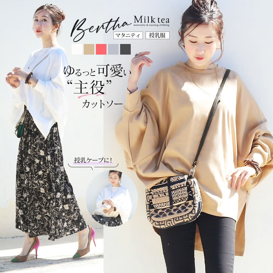 商品カテゴリ:授乳服 授乳 マタニティ マタニティ 妊娠 出産 妊婦 妊婦服 産前産後 出産準備 入院準備 産院 妊娠初期 妊娠中期 妊娠後期 産後 授乳期 綿 コットン 100% トップス Tシャツ カットソー ドロップショルダー 体型カバー ドルマン ビッグシルエット 大きいサイズ 前後ヘム ブラウジング カジュアル きれいめ お出かけ 春 夏 秋 冬 オールシーズン 長袖 大人可愛い Milktea ミルクティー ミルクティ マタニティ 服 安い オシャレ おしゃれ