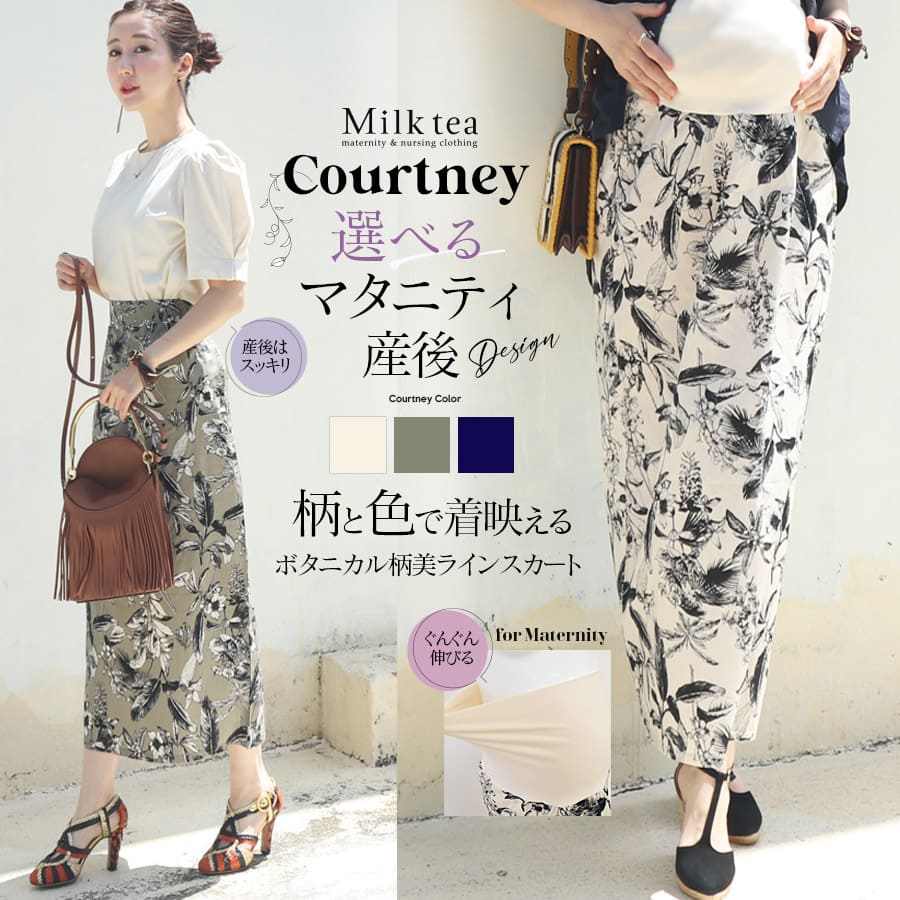 商品カテゴリ:授乳服 授乳 マタニティ服 マタニティ 妊婦服 妊婦 妊娠 出産 産前産後 授乳期 妊娠初期 妊娠中期 妊娠後期 出産準備 マタニティスカート マタニティボトムス 産後スカート スカート ロング タイトスカート ボタニカル 通年 オールシーズン 大きいサイズ レディース 春 夏 秋 冬 Milk tea ミルクティー ミルクティ