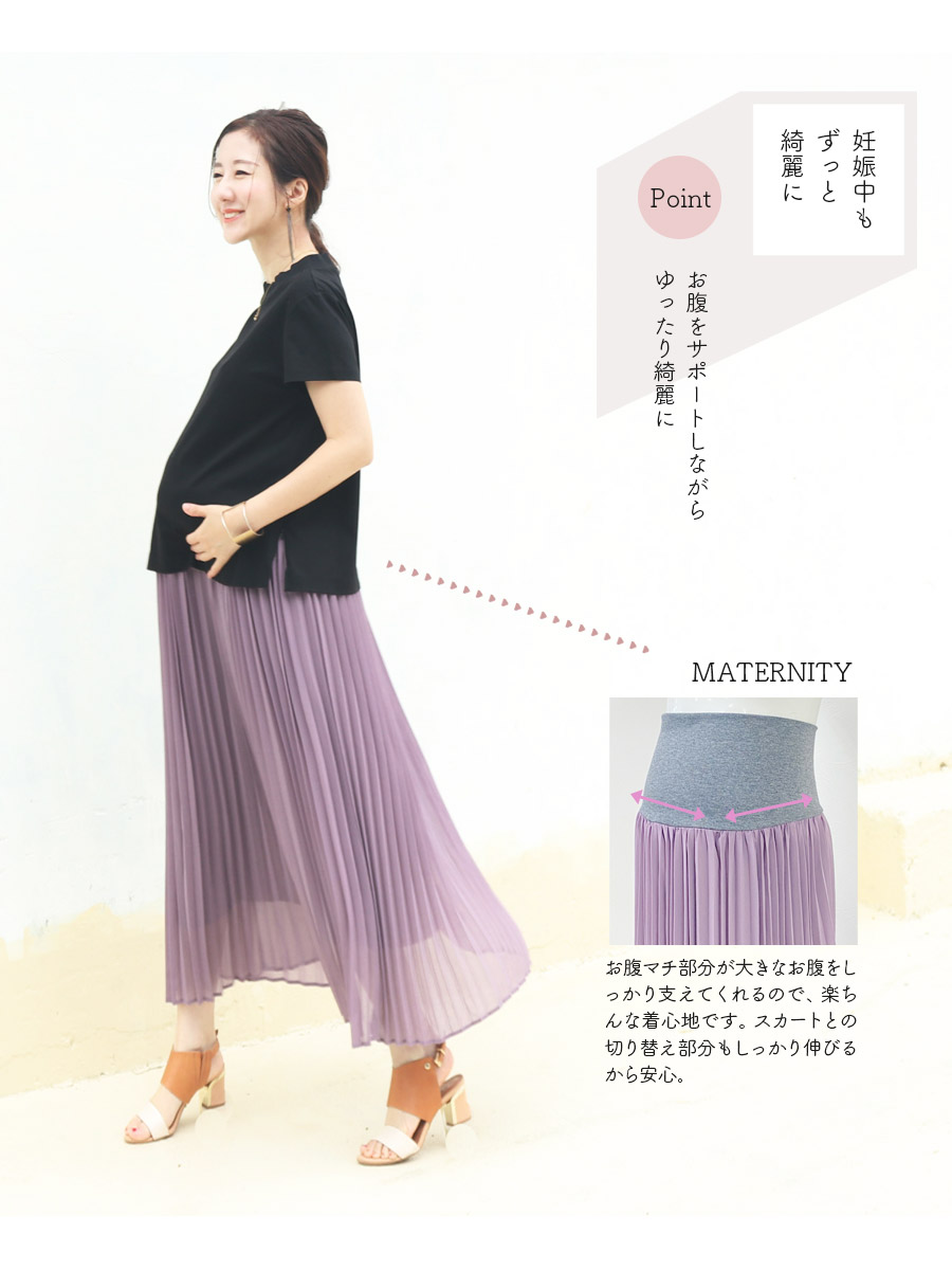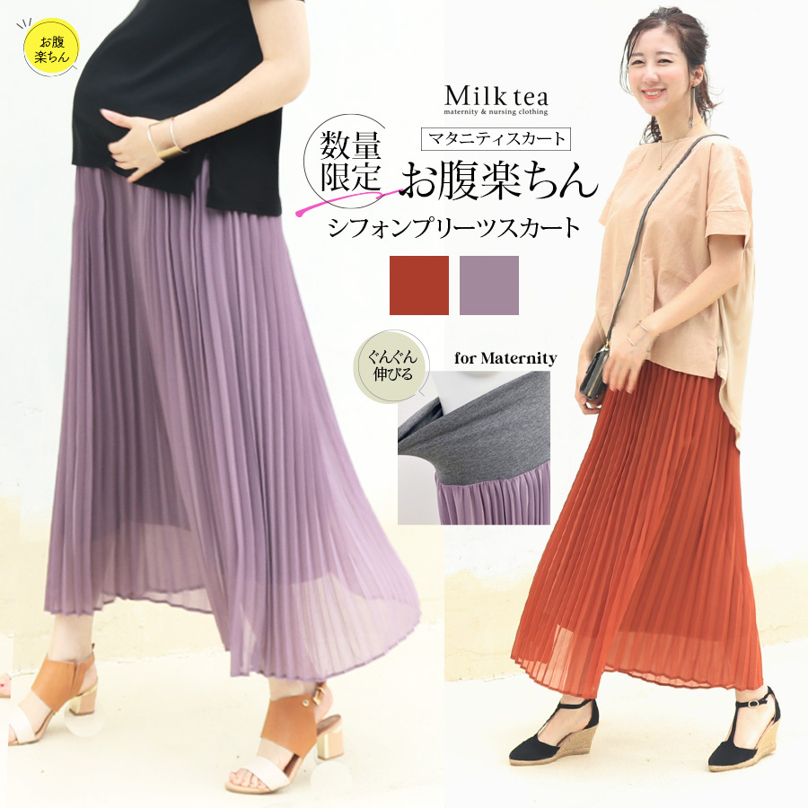 商品カテゴリ:授乳服 授乳 マタニティ服 マタニティ 妊婦服 妊婦 妊娠 出産 産前産後 授乳期 妊娠初期 妊娠中期 妊娠後期 出産準備 マタニティスカート マタニティボトムス 産後スカート スカート ロング プリーツスカート シフォン 通年 オールシーズン 大きいサイズ レディース 春 夏 秋 冬 Milk tea ミルクティー ミルクティ