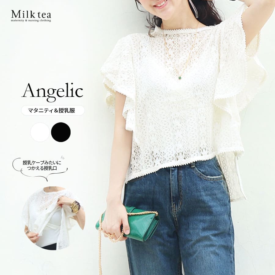 商品カテゴリ:授乳服 授乳 マタニティ マタニティ 妊娠 出産 妊婦 妊婦服 産前産後 妊娠初期 妊娠中期 妊娠後期 臨月 産後 授乳期 卒乳後 出産準備 入院準備 産院 お宮参り お食い初め お呼ばれ フォーマル 授乳トップス ブラウス レース 総レース レディース カットソー Tシャツ フレア袖 ボリューム袖 レース フォーマル おでかけ 春 夏 秋 オールシーズン 半袖 大人可愛い Milktea ミルクティー ミルクティ