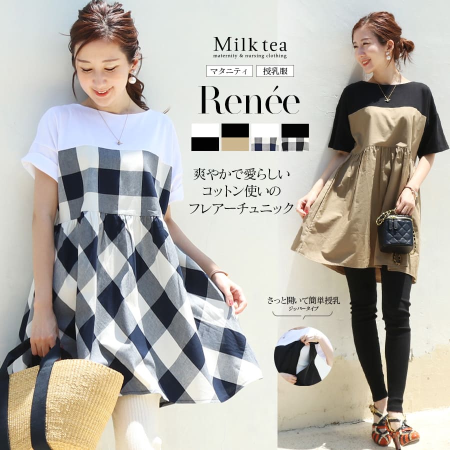 商品カテゴリ:授乳服 授乳 マタニティ マタニティ 妊娠 出産 妊婦 妊婦服 産前産後 出産準備 入院準備 産院 レディース トップス チュニック 綿 コットン フレアー 春 夏 秋 冬 オールシーズン 長袖 大人可愛い Milktea ミルクティー ミルクティ