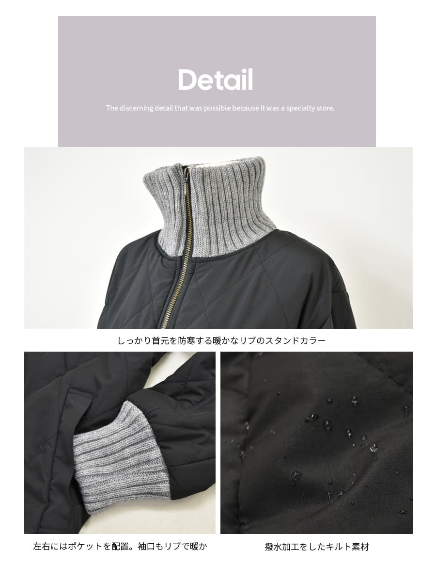 キルティングとリブニットを組み合わせた、バイカラーデザインで、モノトーンカラーがシンプルで大人っぽい雰囲気に。