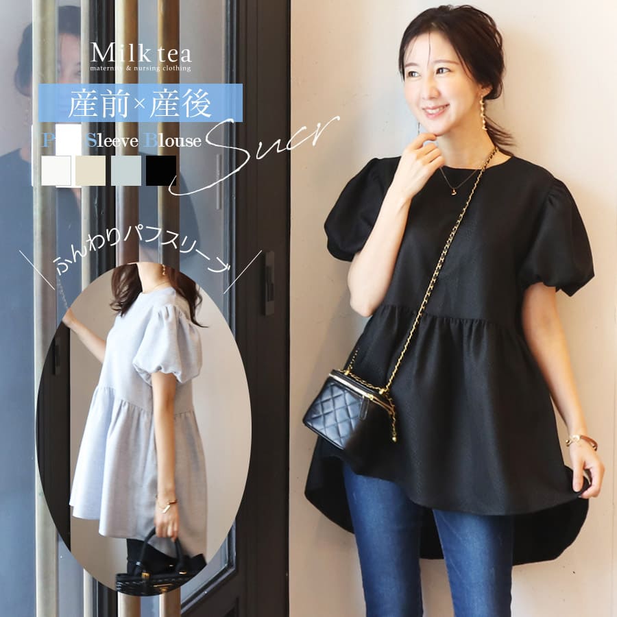 商品カテゴリ:マタニティ マタニティウエア マタニティワンピース 妊娠 出産 妊婦 妊婦服 産前産後 出産準備 入院準備 産院 妊娠初期 妊娠中期 妊娠後期 レディース トップス ブラウス チュニック パフ袖 宮参り お食い初め お呼ばれ 半袖 五分袖 春 夏 秋 オールシーズン 大人可愛い Milktea ミルクティー ミルクティ マタニティ服と授乳服の通販なら【公式】Milk teaオンラインショップ