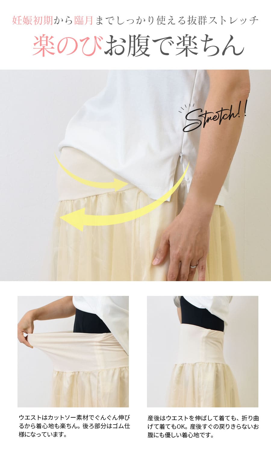 商品カテゴリ:マタニティ マタニティウエア マタニティワンピース 妊娠 出産 妊婦 妊婦服 産前産後 出産準備 入院準備 産院 妊娠初期 妊娠中期 妊娠後期 レディースファッション スカート マタニティスカート マタニティボトムス チュール チュールスカート チュールレース 春 夏 秋 オールシーズン 大人可愛い Milktea ミルクティー ミルクティ マタニティ服と授乳服の通販なら【公式】Milk teaオンラインショップ