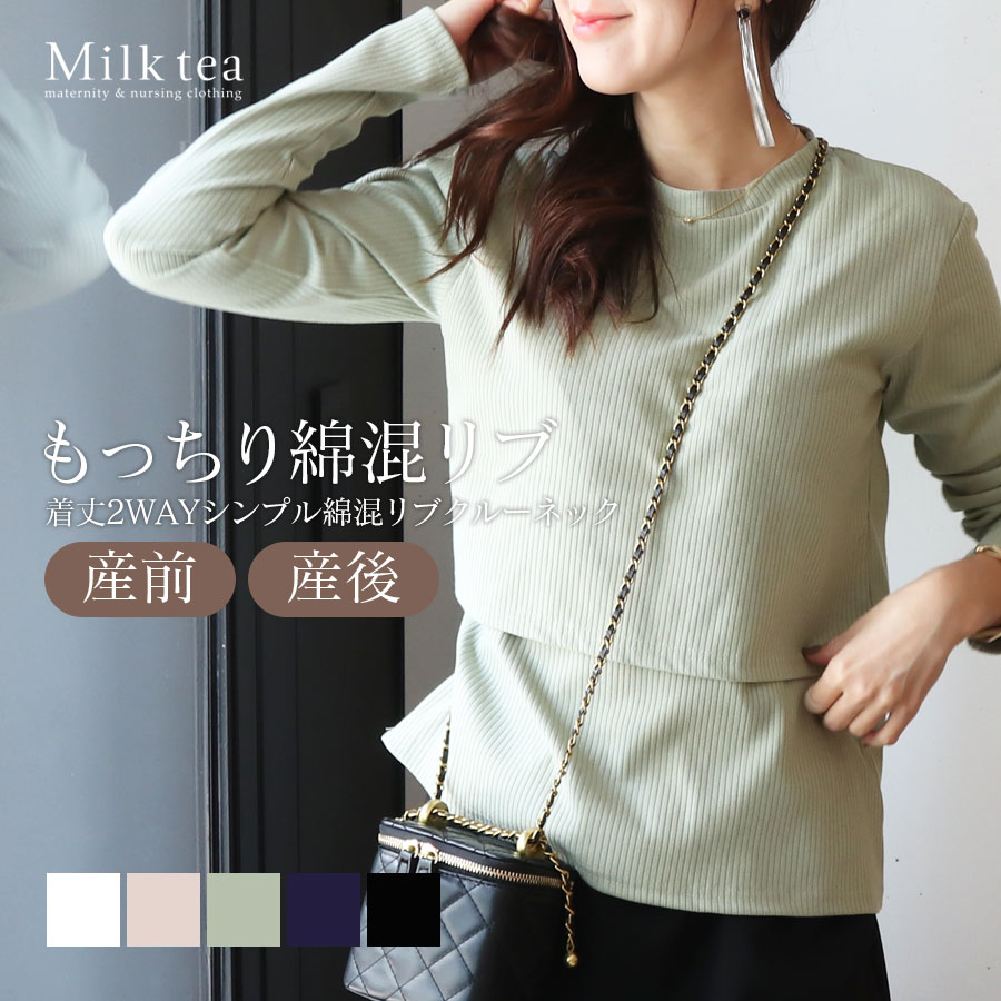 商品カテゴリ:授乳服 授乳 マタニティ マタニティウェア 妊娠 出産 妊婦 妊婦服 産前産後 出産準備 入院準備 産院 妊娠初期 妊娠中期 妊娠後期 レディース トップス Tシャツ カットソー リブトップス リブ素材 クルーネック インナー ボトムスイン シンプル ベーシック 妊婦服 暖か 防寒 春 秋 冬 大人可愛い Milktea ミルクティー ミルクティ マタニティ服と授乳服の通販なら【公式】Milk teaオンラインショップ