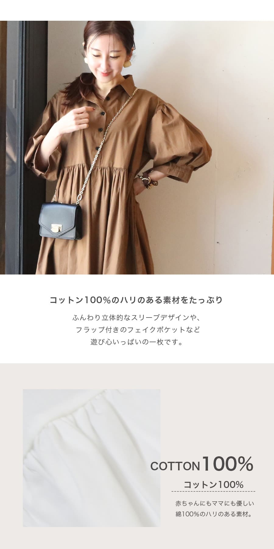 オーバーシルエットが可愛い、チュニックとしても使える<授乳&マタニティ対応>のコットンシャツ。