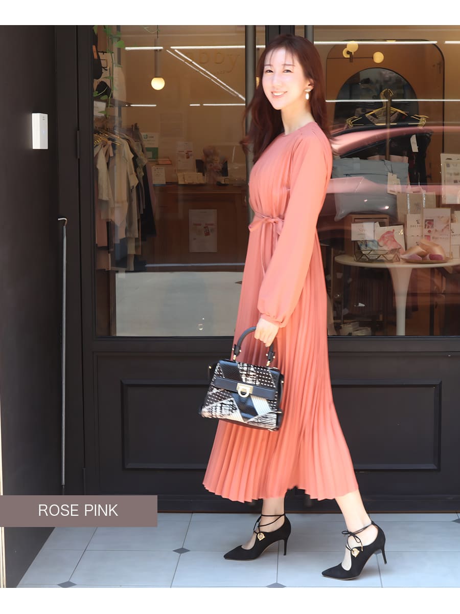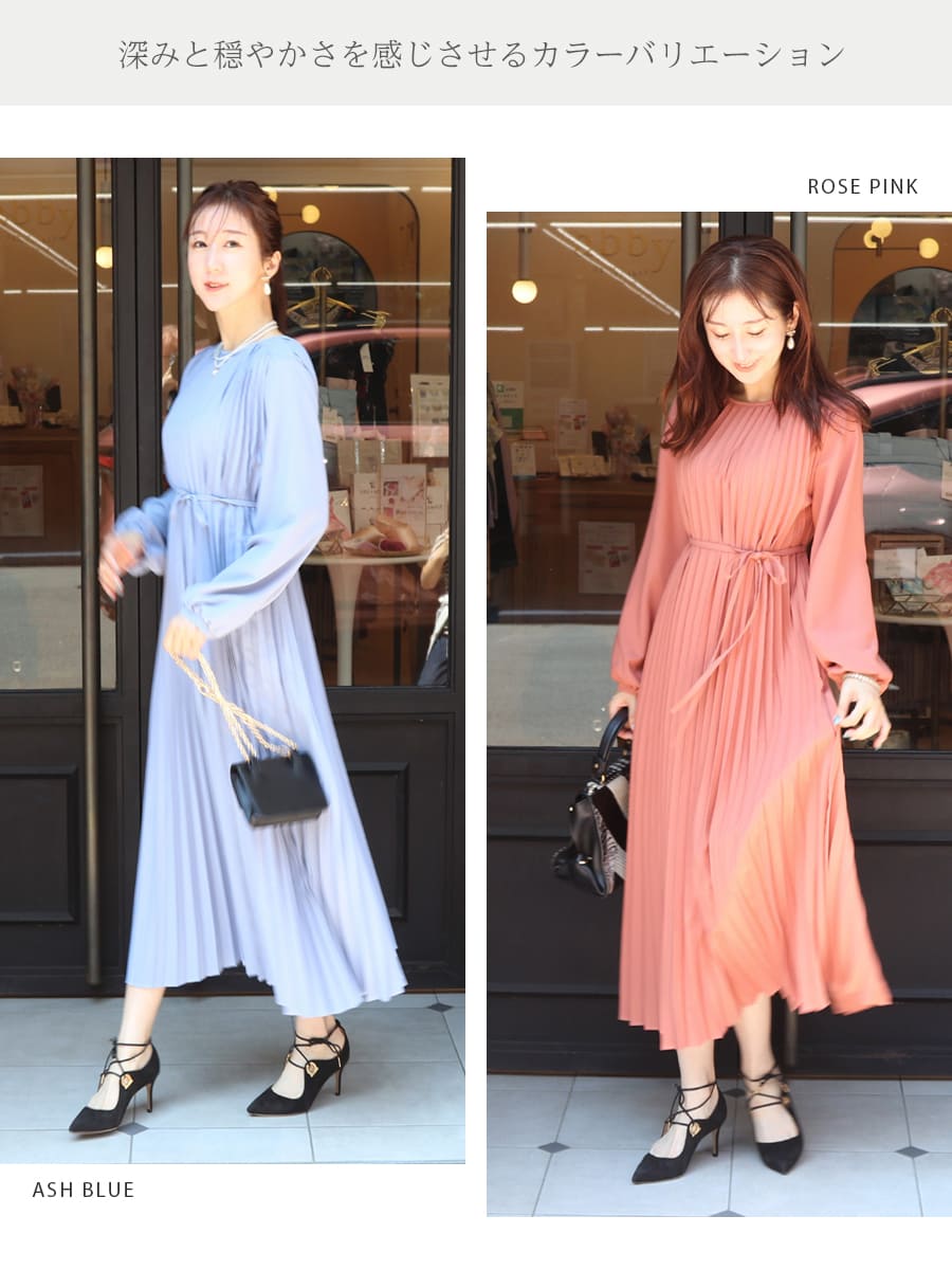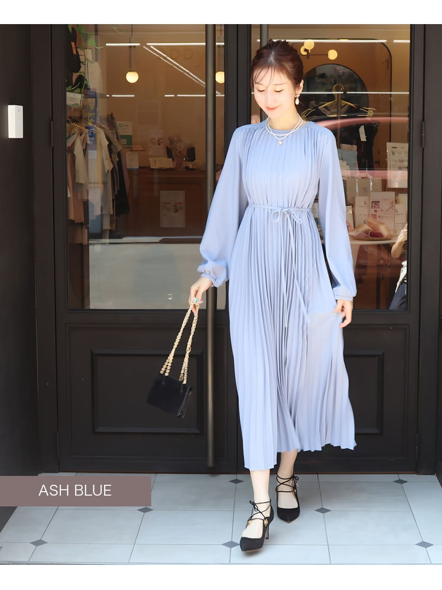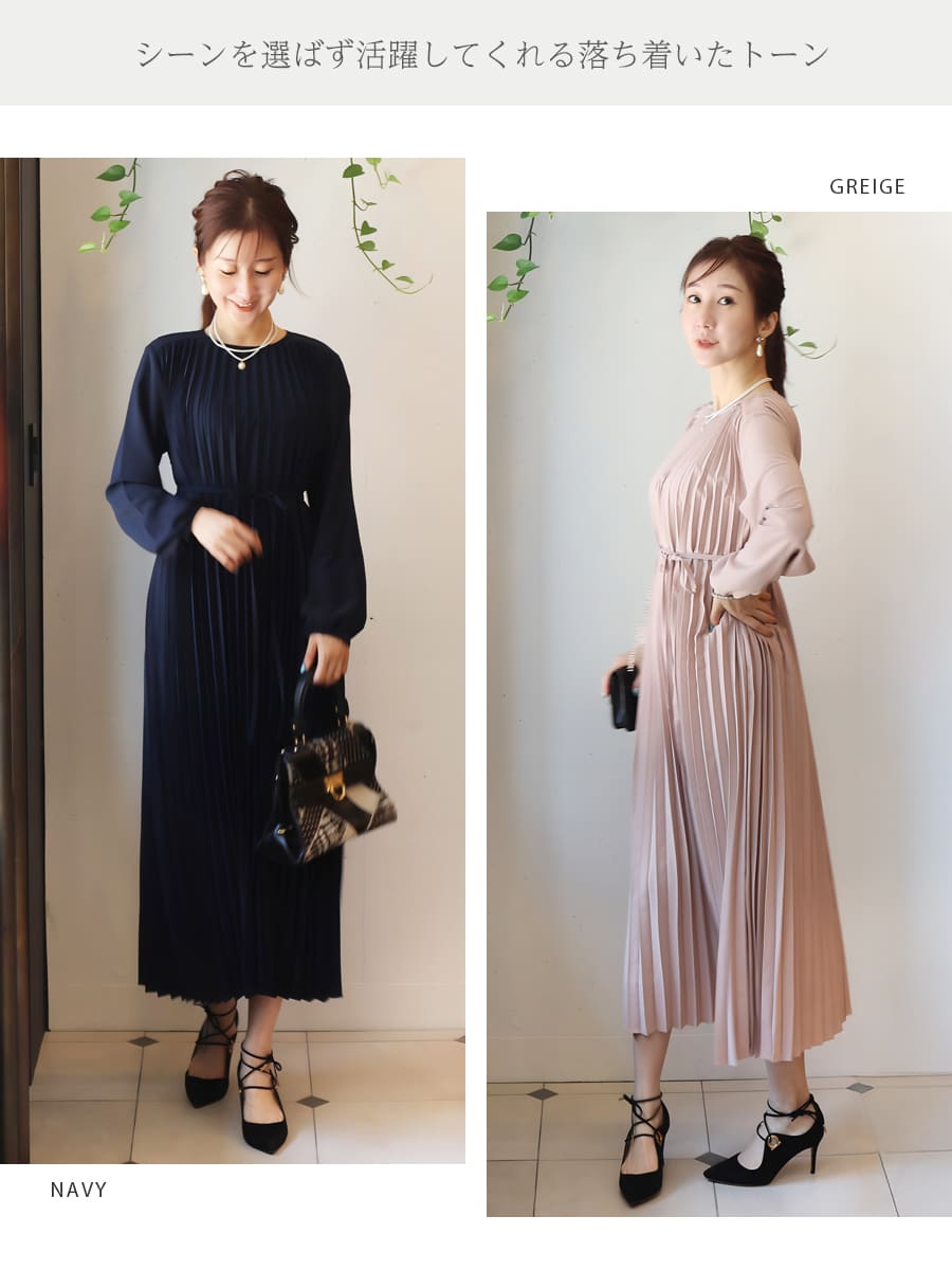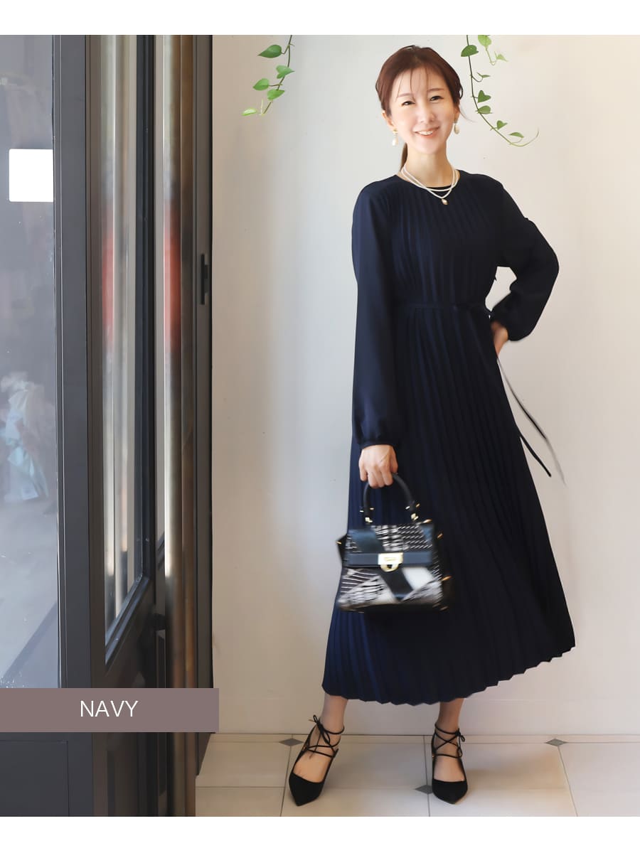 軽やかなプリーツが美しく揺れる洗練された雰囲気溢れる上品ワンピース。