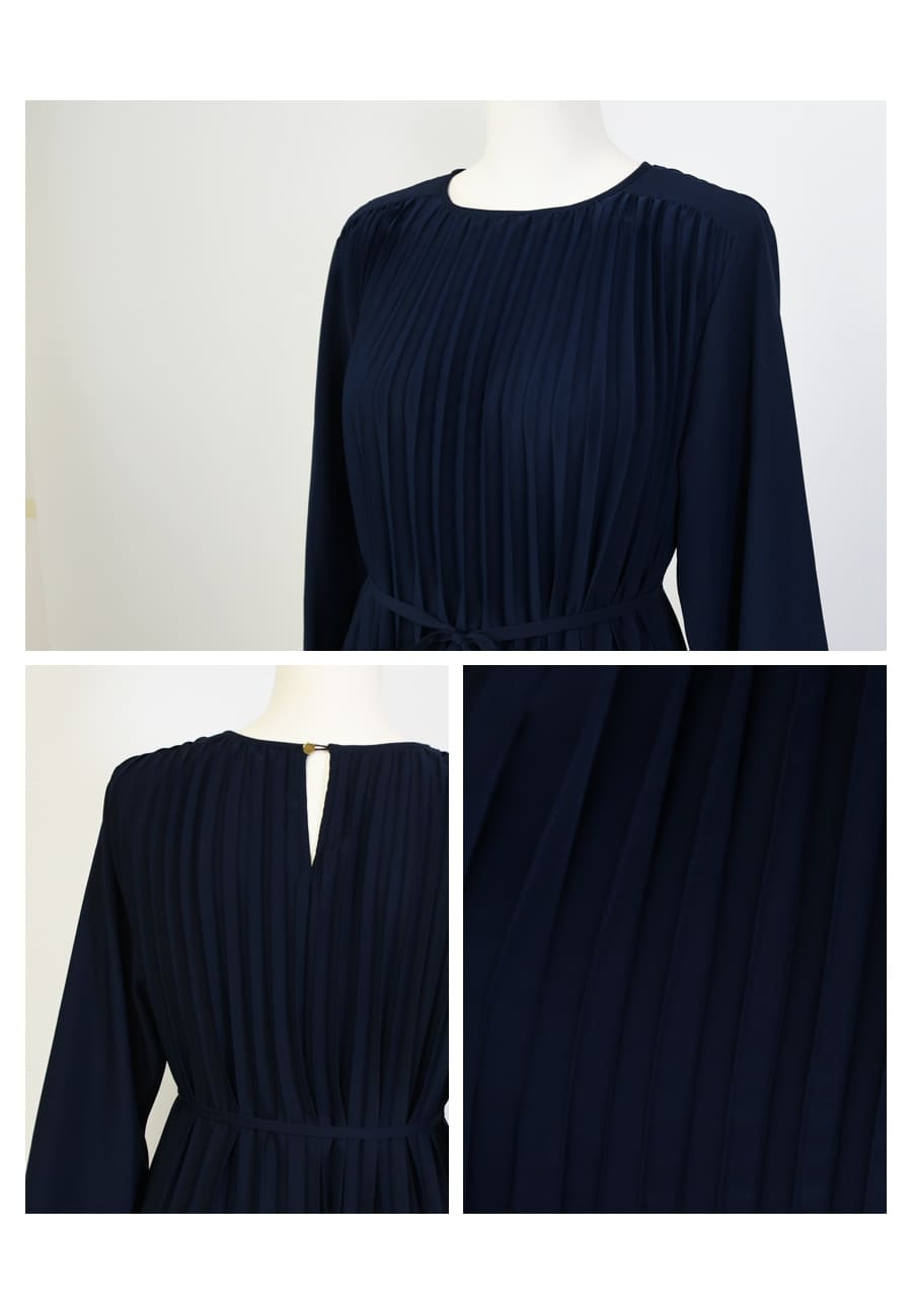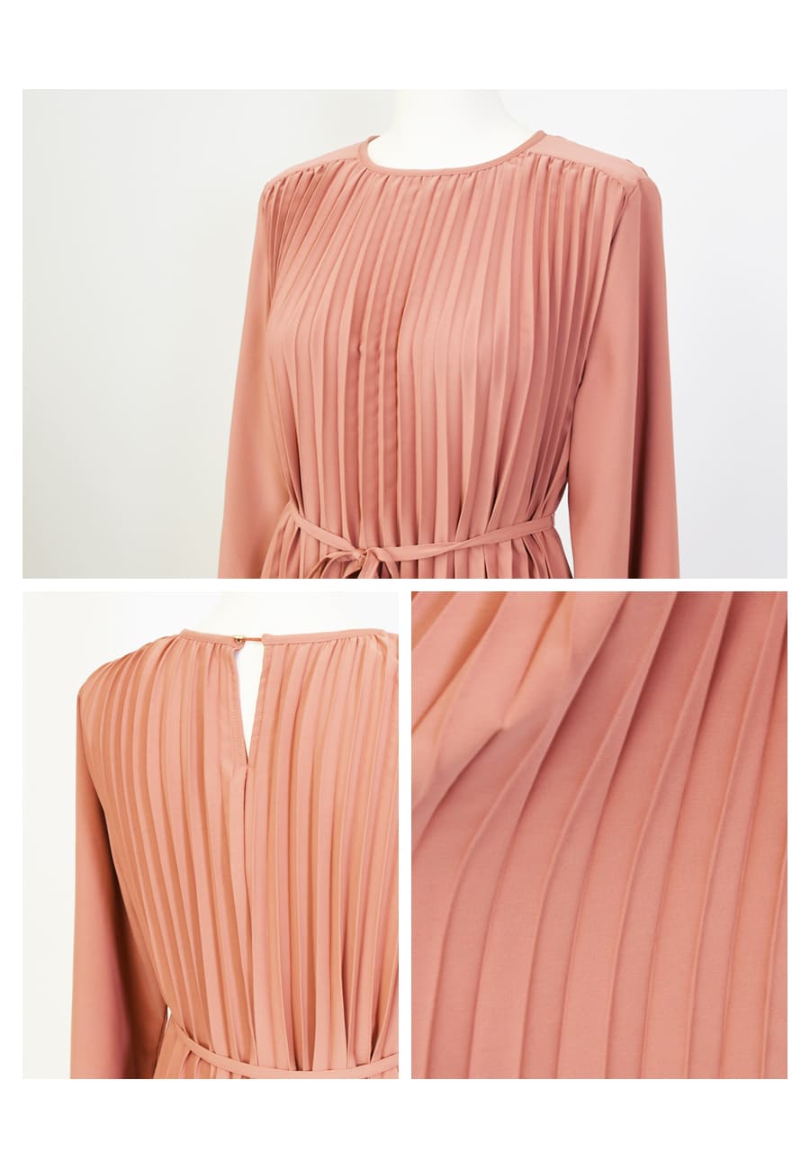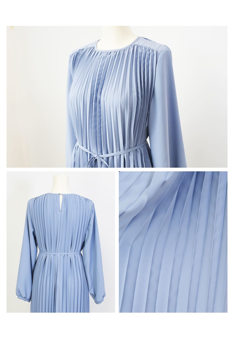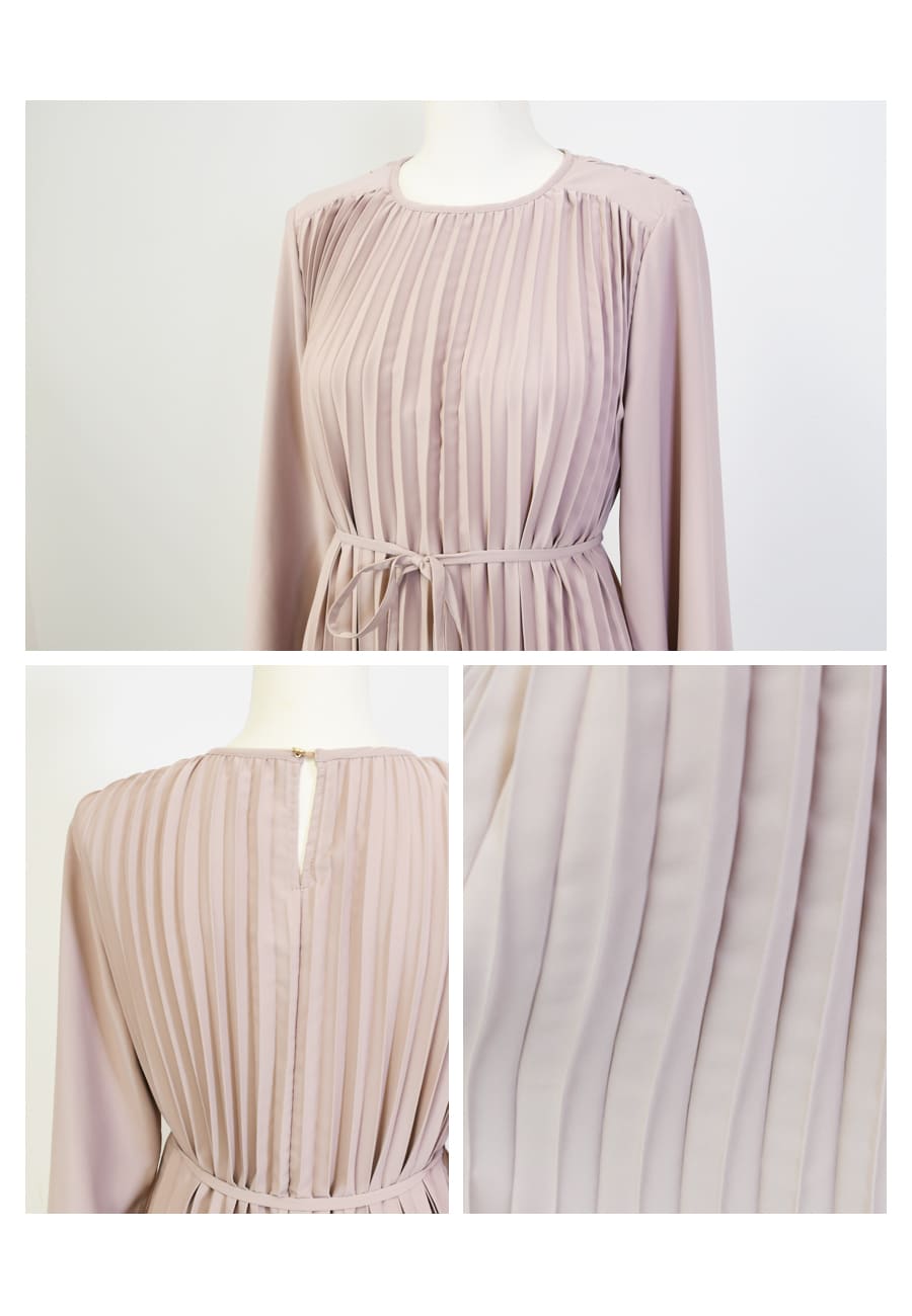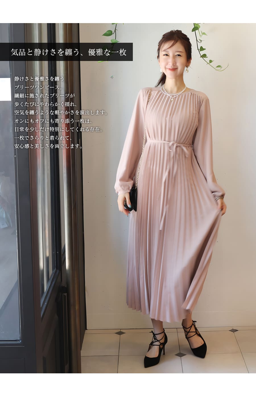 軽やかなプリーツが美しく揺れる洗練された雰囲気溢れる上品ワンピース。