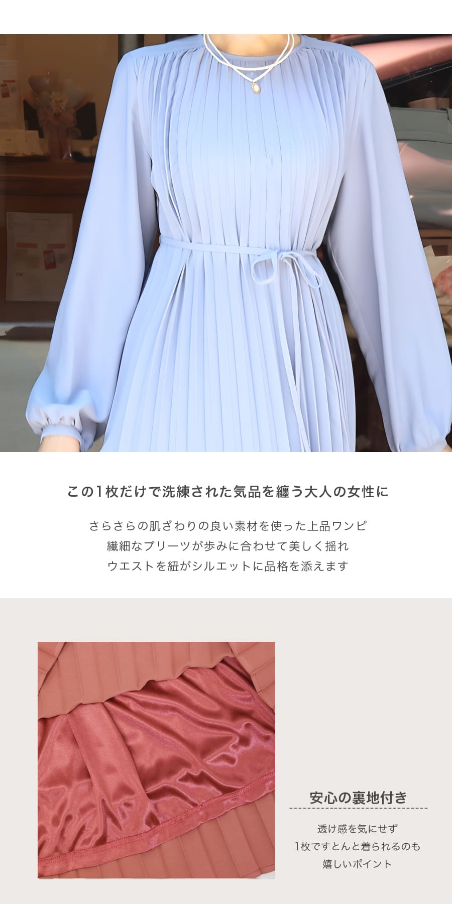 一枚でさらりと着られて、安心感と美しさを両立します。