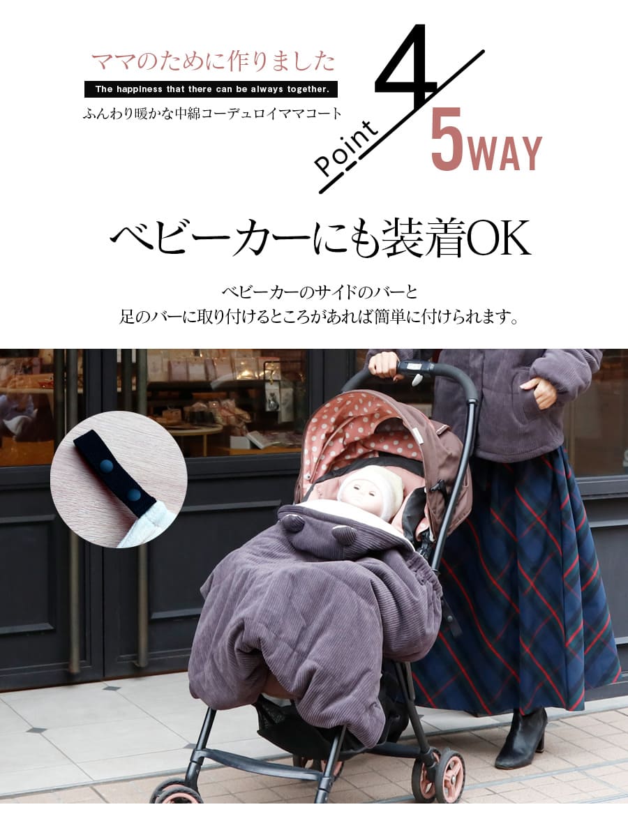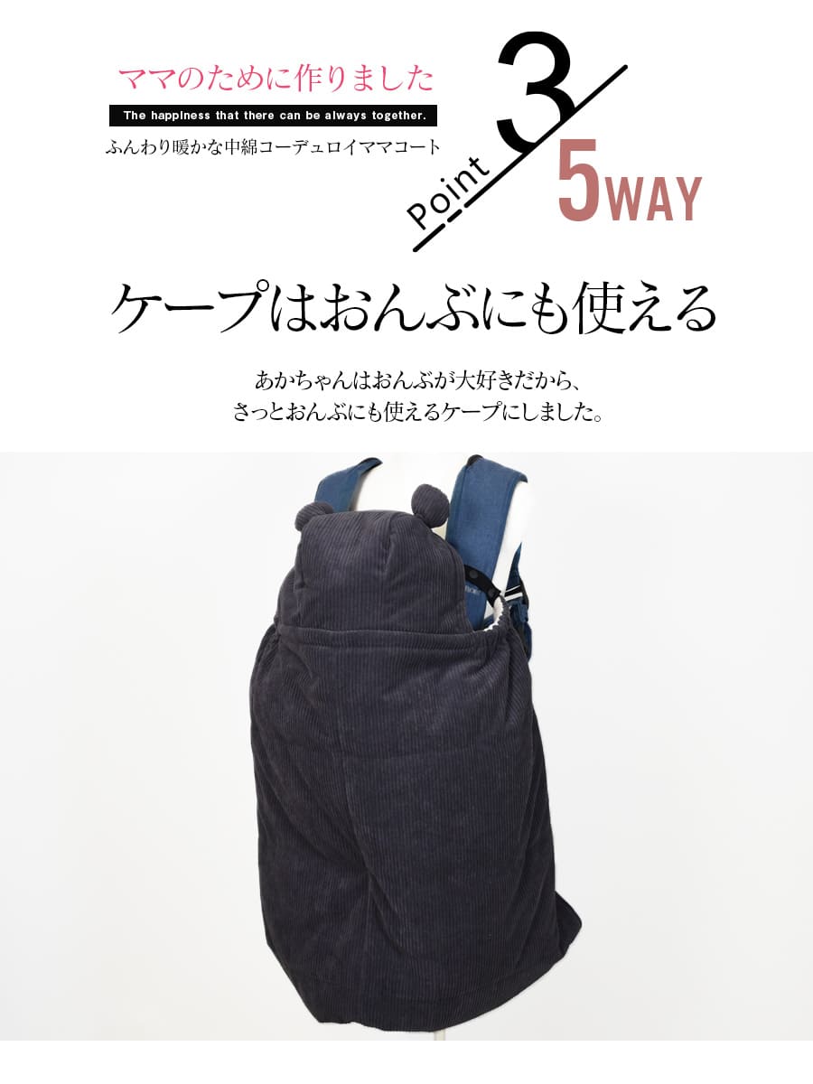 抱っこ・おんぶ・単体使いまでできるケープ付きで、赤ちゃんの体温もしっかり守りながら、寒い季節のおでかけを快適にサポートします。