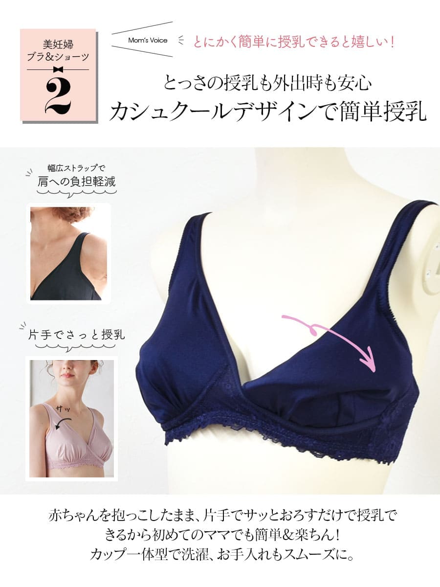 しっかり包み込んでママの美胸を創る、立体構造カップの「簡単授乳ブラ&産前産後ショーツ」の2点セットです。